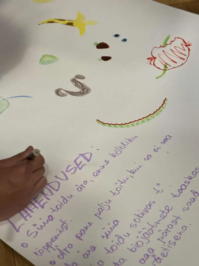 Edukuse Mustrite töötoas sukelduti sotsiaalmeedia maailma, aga hoopis uue pilguga. Noored arutlesid, mis paneb inimesi peatumata edasi kerimise asemel päriselt kuulama. Nad said katsetada, kuidas roheline sõnum võib olla sama inspireeriv ja kaasahaarav kui tantsuvideo või meem. Töötoa lõpuks valmisid esimesed keskkonnateemalised postitused ja story’d – täis loomingulisust ja sõnumit, mida jagada laiemale maailmale.